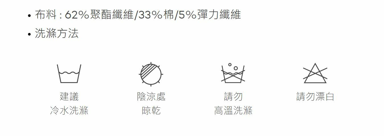 - 布料、標籤、縫線、吊牌均不含任何熒光成分