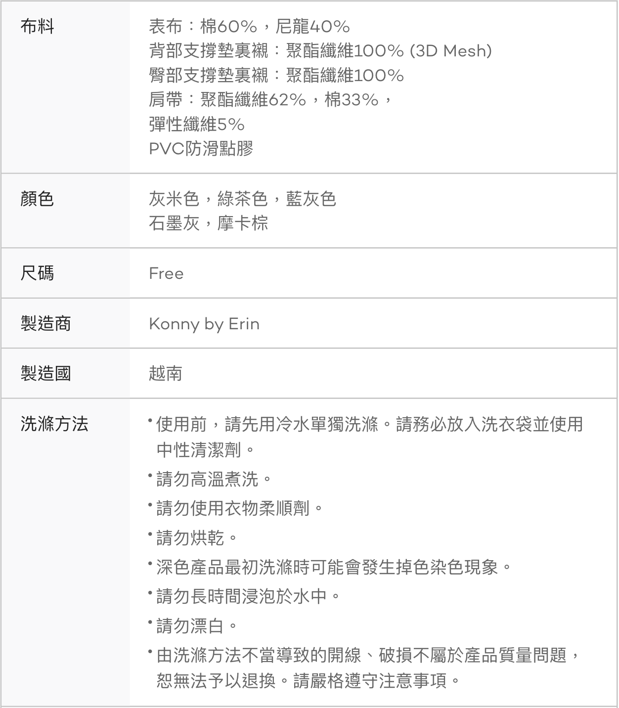 - 臀部支撐墊使用防滑布料不打滑,更安心