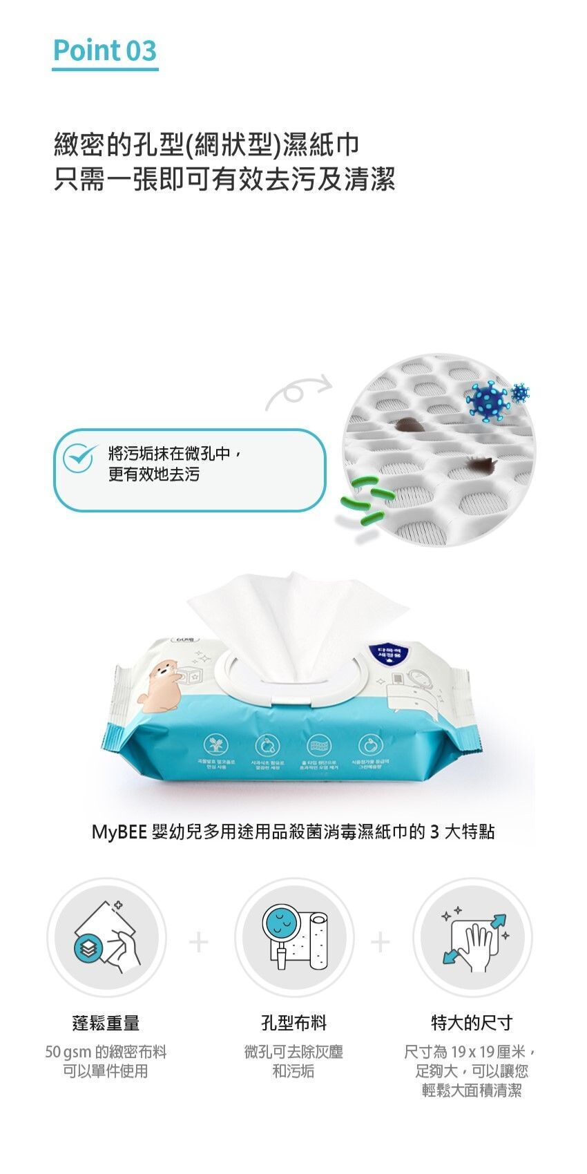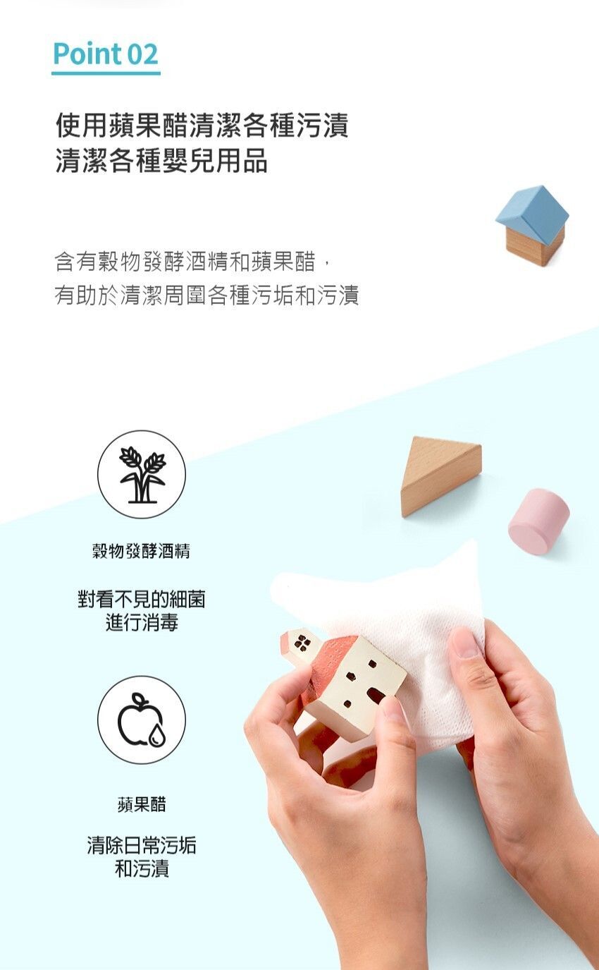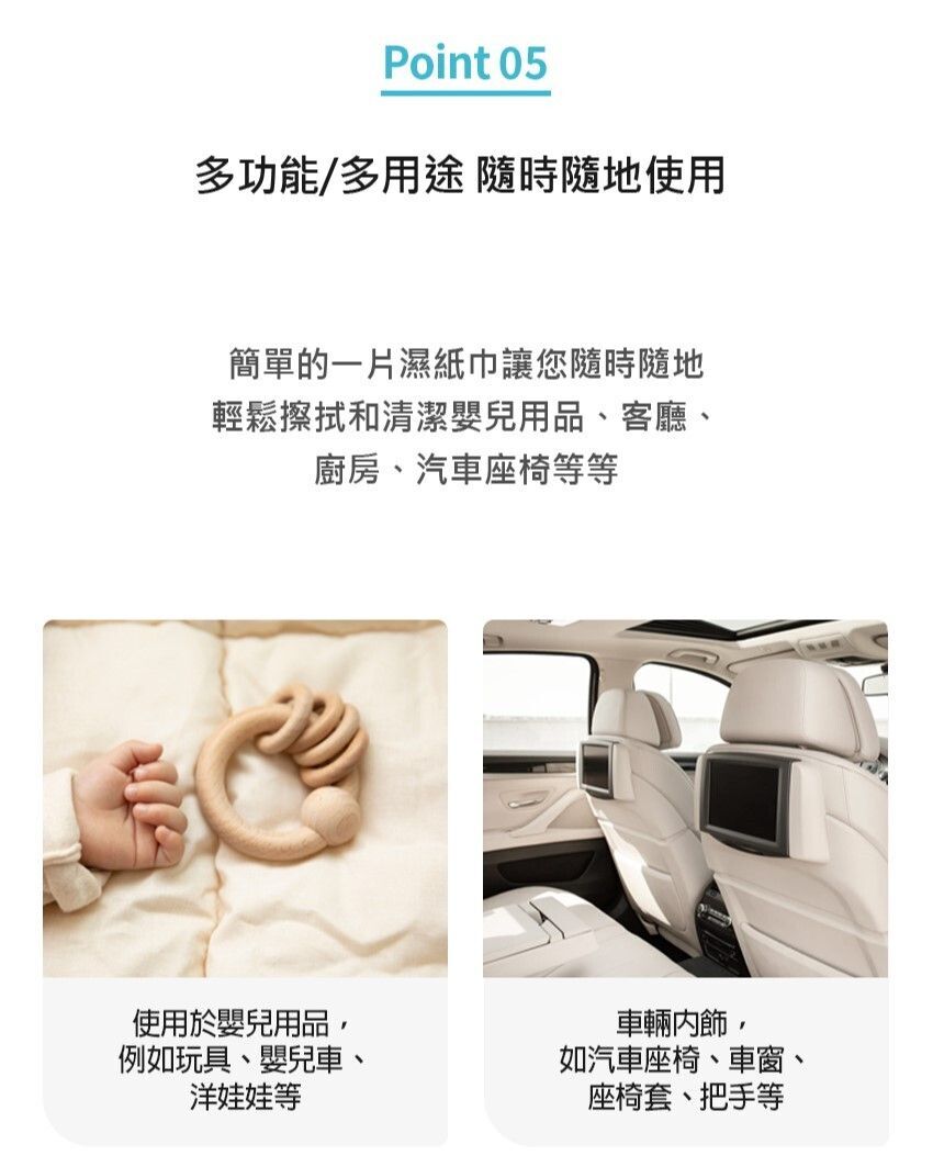 -孔型厚濕紙巾設計,有效清潔和去除污漬