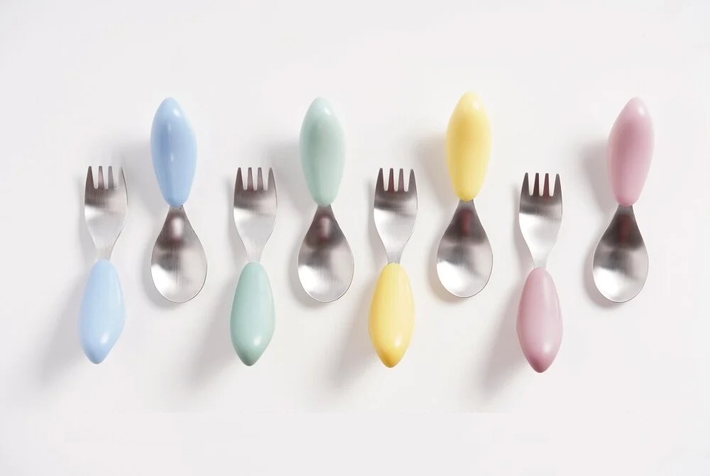 - 與職能治療師合作研發,能幫助幼兒自然握把,自主進食